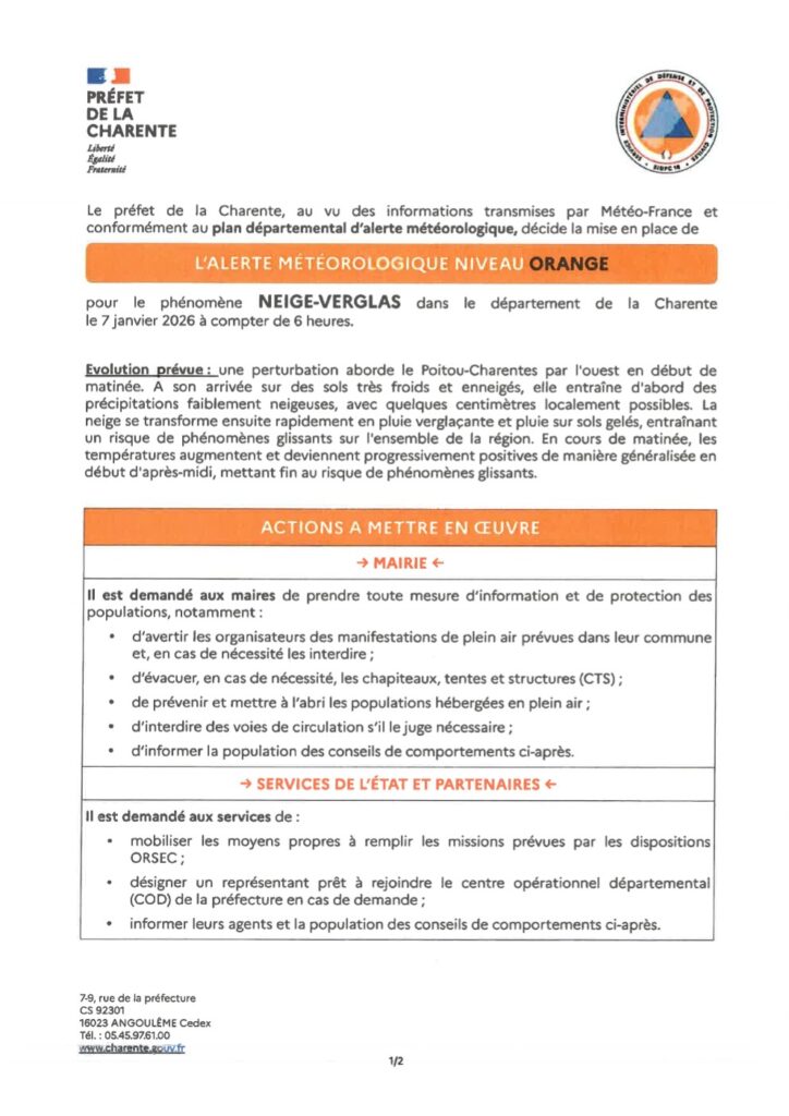 ALERTE MÉTÉOROLOGIQUE NIVEAU ORANGE LE 7 JANVIER 2026 A PARTIR DE 6H00.