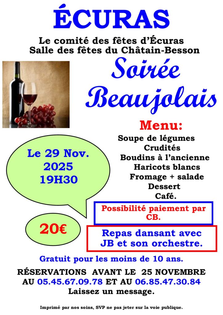 Samedi 29 novembre 2025 beaujolais au CHÂTAIN-BESSON à ÉCURAS.