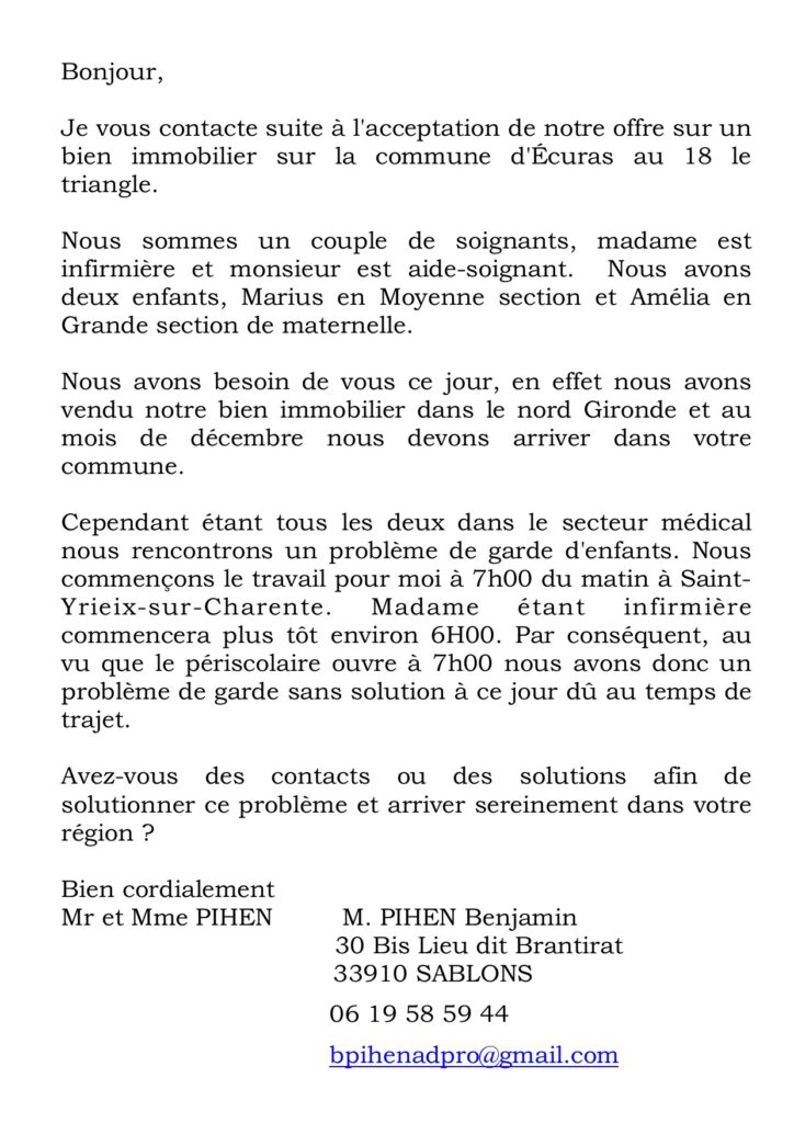 URGENT RECHERCHE POUR GARDE D’ENFANTS SUR LA COMMUNE D’ÉCURAS.